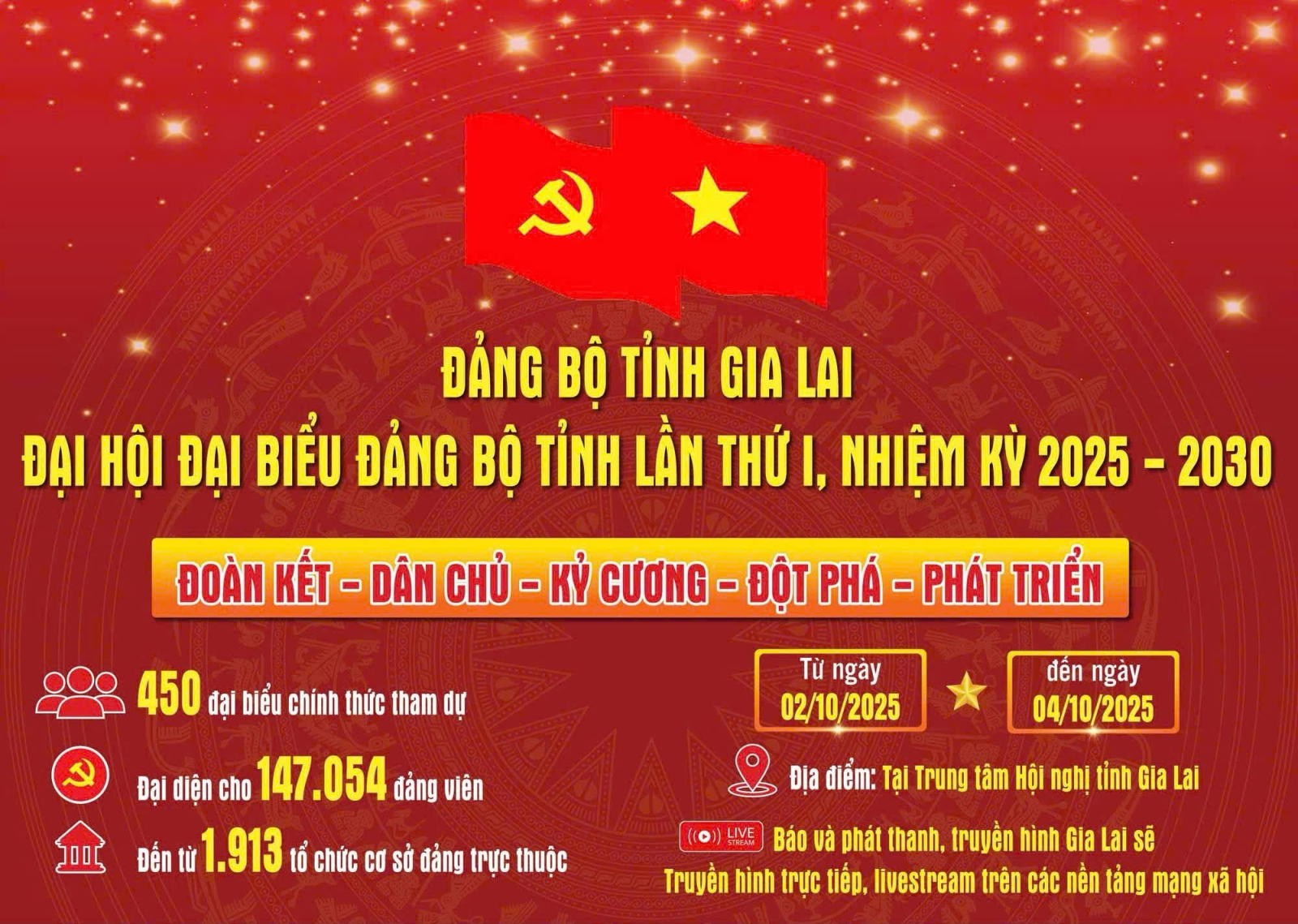 Được sự đồng ý của Bộ Chính trị, Ban Chấp hành Đảng bộ tỉnh Gia Lai nhiệm kỳ 2020-2025 quyết định triệu tập Đại hội đại biểu Đảng bộ tỉnh lần thứ I, nhiệm kỳ 2025-2030.