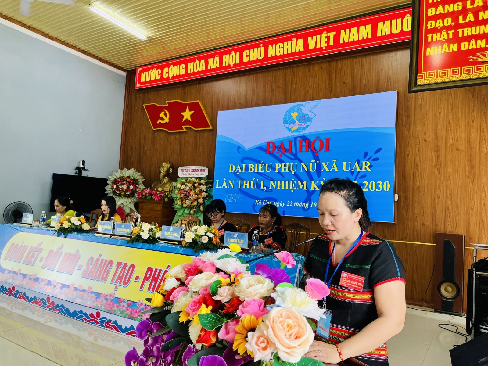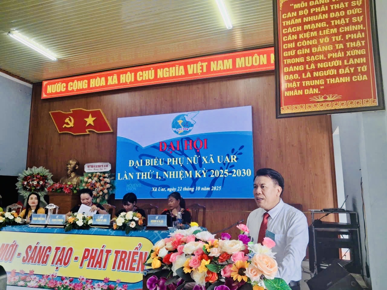 Phát biểu tại Đại hội, đồng chí Lê Văn Tiệp - Phó Bí thư Thường trực Đảng ủy xã Uar biểu dương những kết quả Hội LHPN xã đạt được trong nhiệm kỳ qua. Đồng chí cũng mong muốn, nhiệm kỳ tới, Hội LHPN xã tiếp tục đổi mới nội dung, phương thức hoạt động hội; hỗ trợ phụ nữ thực hiện tốt công tác chuyển đổi số, quan tâm tuyên truyền thay đổi nhận thức, hỗ trợ sinh kế giúp phụ nữ vươn lên, xây dựng gia đình no ấm, tiến bộ, hạnh phúc. Tích cực tham gia các phong trào thi đua yêu nước, như phong trào "Phụ nữ chung tay xây dựng nông thôn mới", xây dựng gia đình 5 không 3 sạch.