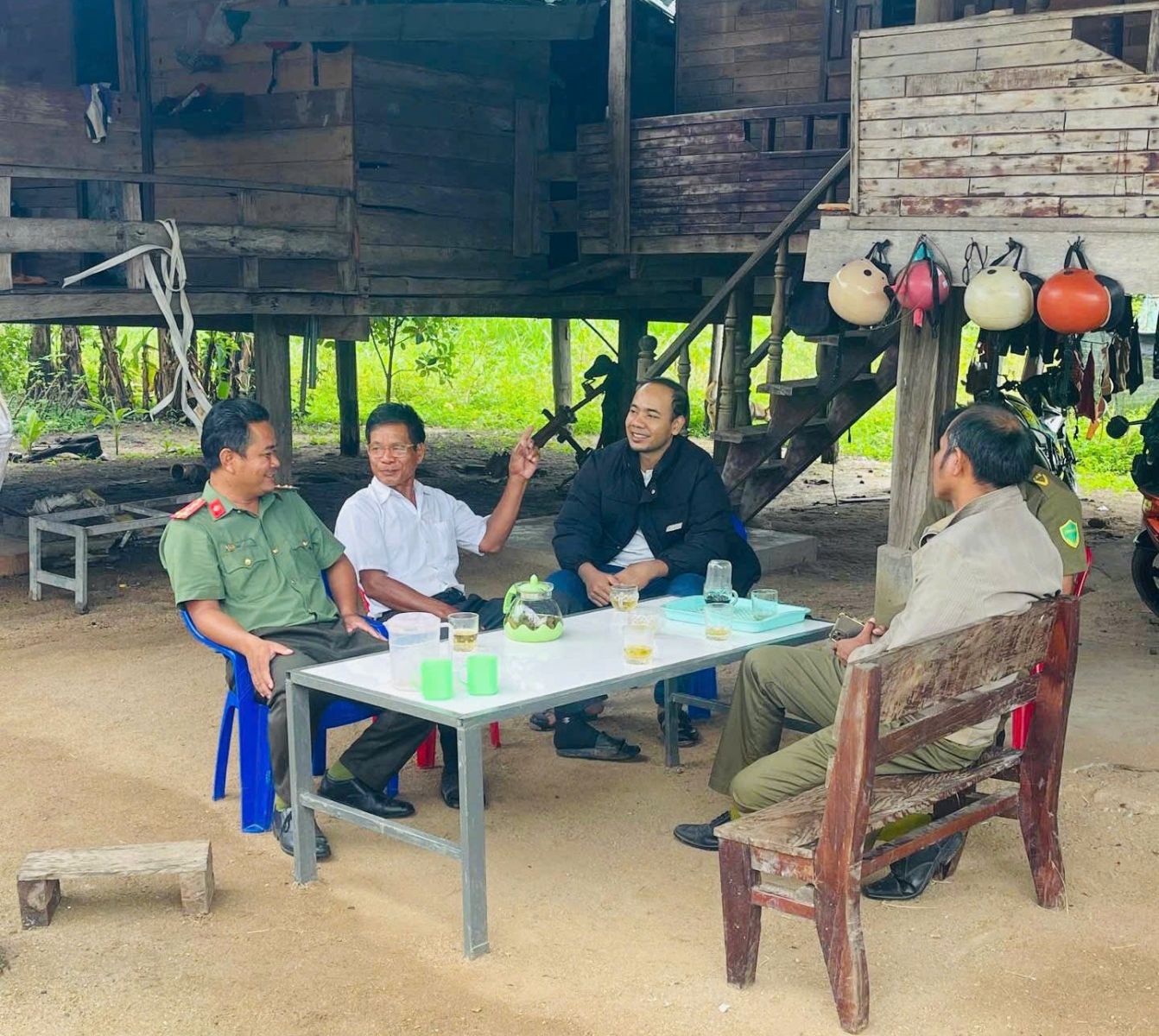 Ảnh: Công an xã thăm hỏi, động viên người uy tín Ksor Dung