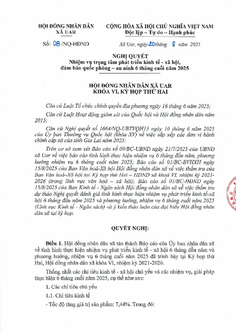 File đính kèm | Nghị quyết số 08/NQ-HĐND Về Nhiệm vụ trọng tâm phát triển kinh tế - xã hội, đảm bảo quốc phòng - an ninh 06 tháng cuối năm 2025 | ||